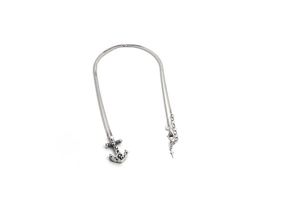 Collana Da Uomo Di Cesare Paciotti Della Collezione Visionary. Collana In Argento E Zircone Di Colore Silver E Nero Con Soggetto A Forma Di Ancora Gotica. Gioiello Di Misura 55 Cm + 5 Cm Di Riduzione E Chiusura A Pappagallo