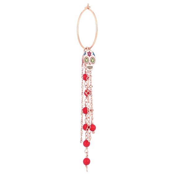 mono orecchino a cerchio con teschio smaltato e pasta di corallo