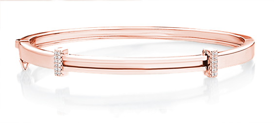 Bracciale rigido con due barre pavettate con cubic zirconia e binario centrale per l'inserimento di charms o lettere dell'alfabeto
