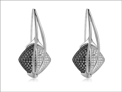 ORECCHINI IN ARGENTO 925 E GALVANICA RUTENIO CON PAVÈ DI 136 ZIRCONI BIANCHI E 136 ZIRCONI GRIGI