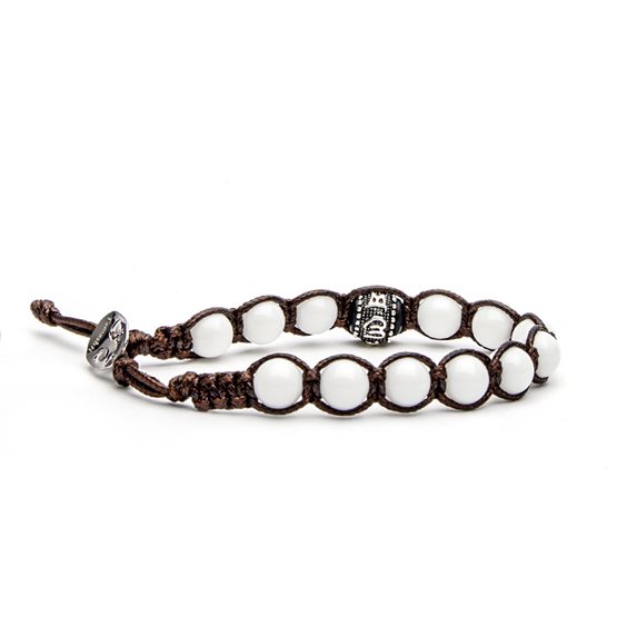 Pietra naturale dal colore bianco identifica il colore della purezza, del riposo e della meditazione ed è rappresentata nel buddismo dal Buddha Vairochana. Il Tamashii in agata bianca trasforma l’illusione di ignoranza nella saggezza della realtà. Bracciale originale tibetano Tamashii realizzato con pietre naturali Agata Bianca Il bracciale è arricchito da una ruota in Argento 925‰ a sfera e incise con il mantra “Om Mani Padme Hūm” del Buddha della compassione Cenresig. Misura pietre: 8mm. Unisex e taglia unica (il bracciale è predisposto per adattarsi a qualsiasi diametro di polso).