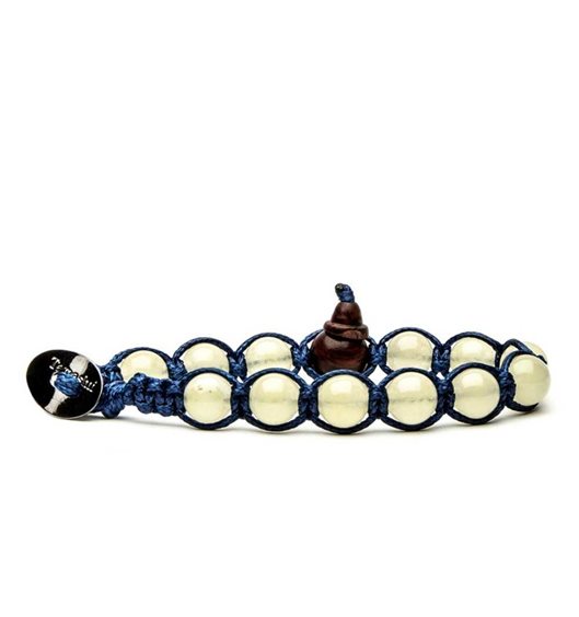 In Tibet i gioielli hanno un forte valore simbolico e tramandano valori culturali e religiosi antichissimi. Nella tradizione buddhista le gemme e i gioielli servono come metafore per gli ideali della fede ed esprimono misteriose condizioni spirituali e attributi interiori nascosti. Tamashii (o Shamballa) è un bracciale utilizzato dai monaci tibetani per favorire la meditazione, per le pratiche religiose e come talismano. Infatti Tamashii significa “anima” e il termine deriva da "tama" che significa “gioiello”, quindi “gioiello dell’anima”. Chi lo indossa persegue un ideale di pace e di amore verso se stesso e verso il mondo, il bracciale aiuta a proteggere la sua anima, a farla crescere e farle trovare un ruolo ed un senso all'interno della vita. Prodotto realizzato in Tibet e benedetto da monaci buddisti. Bracciale Tamashii Tradizionale a 1 giro Bracciale tradizionale originale tibetano (Shamballa) realizzato in Tibet con pietre naturali dure, semi-preziose e preziose e benedetto da monaci Buddisti. Ogni bracciale Tamashii è caratterizzato dalla presenza della Calabash (zucca) e dal bottone inciso Tamashii. Gli antichi cinesi della dinastia degli Han orientali, nel loro primo dizionario, definirono la giada (yu) come “la pietra più bella”. Colui che la indossa nella sua variante gialla si ritiene possa essere capace di assorbire un gran numero di informazioni. È adatta anche per donare energia e spensieratezza. La giada infonde molte virtù, tra cui la benevolenza, la fedeltà, l’educazione e la sincerità. Bracciale originale tibetano Tamashii realizzato con pietre naturali GIADA GIALLO CHIARO su base di corda colore BLU. Unisex e taglia unica (il bracciale è predisposto per adattarsi a qualsiasi diametro di polso). Ogni bracciale è spedito con relativa confezione originale e certificato di garanzia.