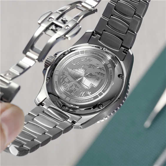 Il nostro orologio da immersione, impermeabile fino a 200 metri, prende il nome da una delle ultime meraviglie della tecnica navale veneziana, il sommergibile Nereide. Questo segnatempo è infatti progettato per resistere a forti sollecitazioni, rendendolo particolarmente adatto a chi pratica sport acquatici.